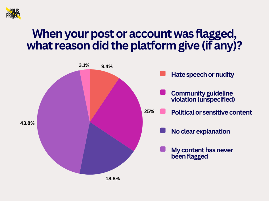 This survey, along with recurring reports, suggests that most LGBTQ+ Nigerians get flagged under vague and unspecified community guideline violations, which often fail to explain what rule the user broke.