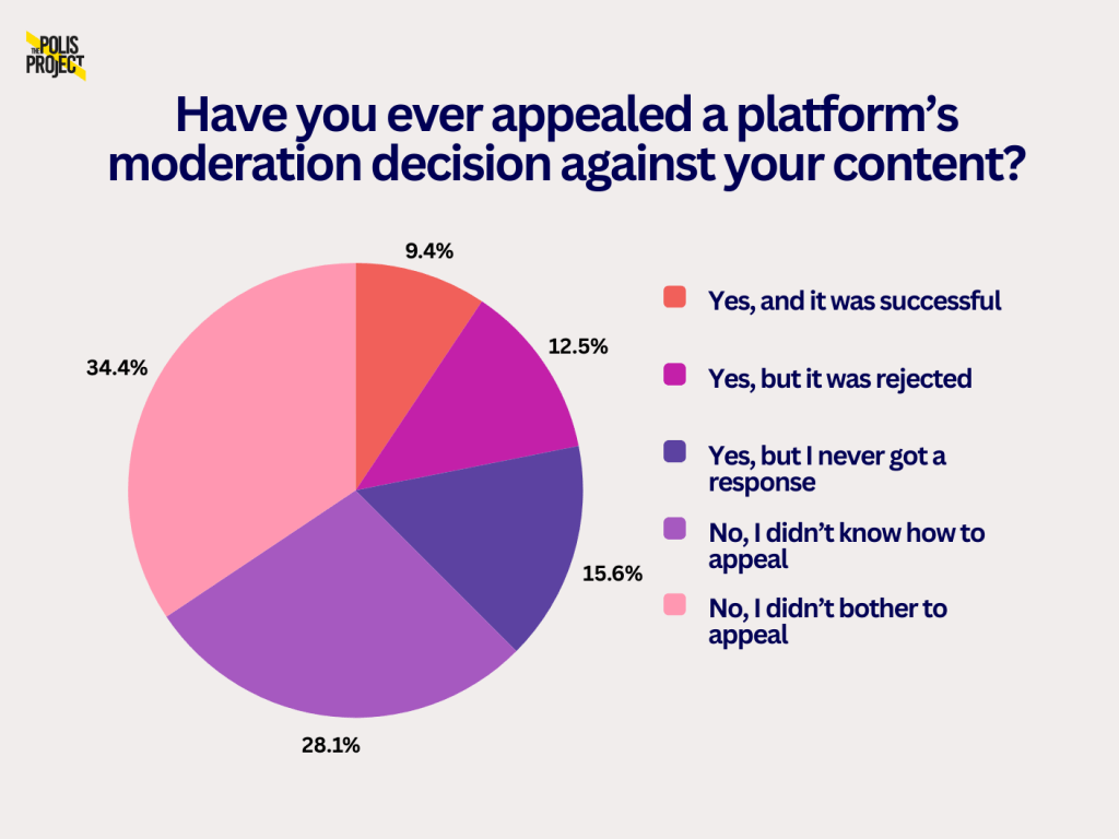 As the survey showed, most queer Nigerian social media users do not appeal to the unjust decisions of platforms. Those who do, they either receive no response or have their appeals rejected.