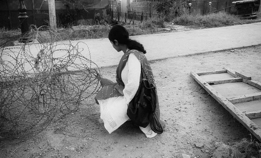 But this photograph is less about the past and the future, and more about the halted present; the present of a Kashmiri woman stuck in a barbed wire. A present that rarely gets captured because time is recorded differently in Kashmir. The untorn dupatta of the past becomes the torn dupatta of the future, and the cause and act of its tearing will be wiped out. However, this photograph records and freezes that present, that act of causation, where the materiality of occupation intrudes upon the corporeality of Kashmiris and in doing so, twists and halts its time geography as well.