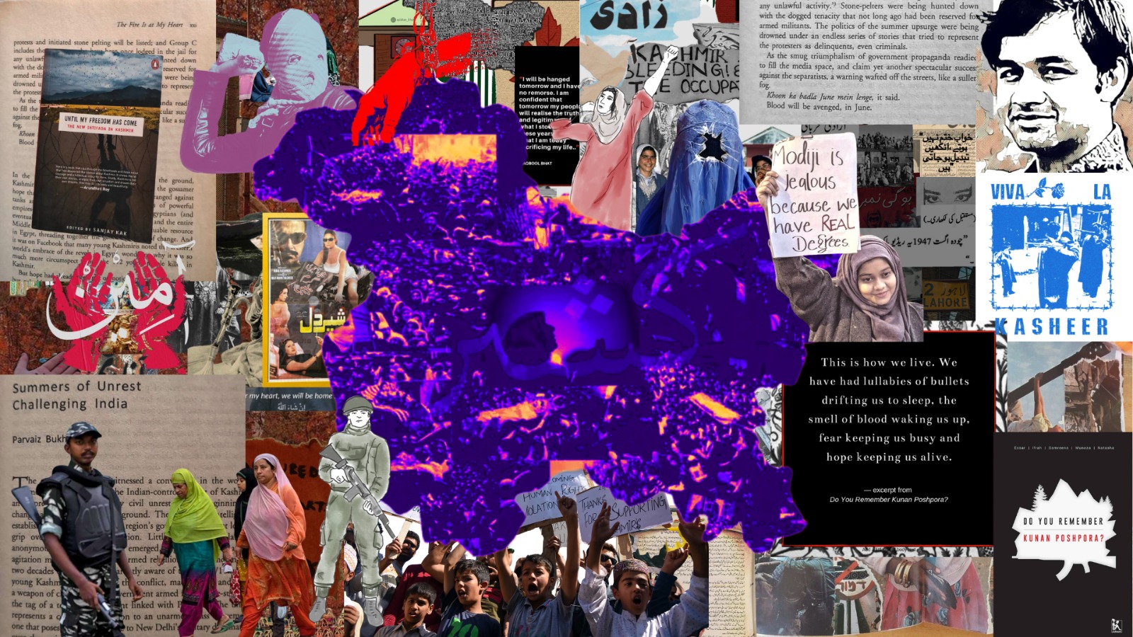 For Kashmiri families, communities, activists, writers, and journalists, counter-memory, in addition to insurrection, has taken many forms: ranging from a mother calling her forcibly disappeared son’s name at a protest, to a folk song mourning those killed, or a poem that invokes freedom and liberty, or writing whole histories and ethnographies of state violence.