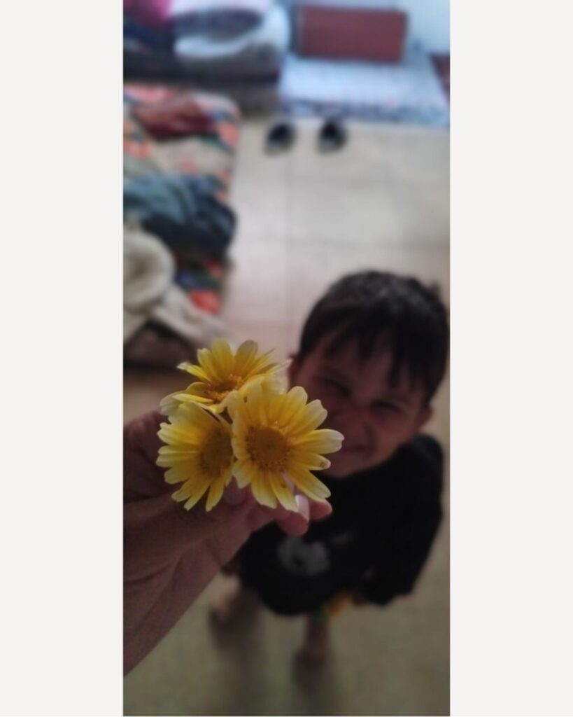 It was my seven-year-old niece. She stepped in with a flower in her hand. She gave me the flower, kissed my cheek, and said, “Just like you love flowers, I love you.”