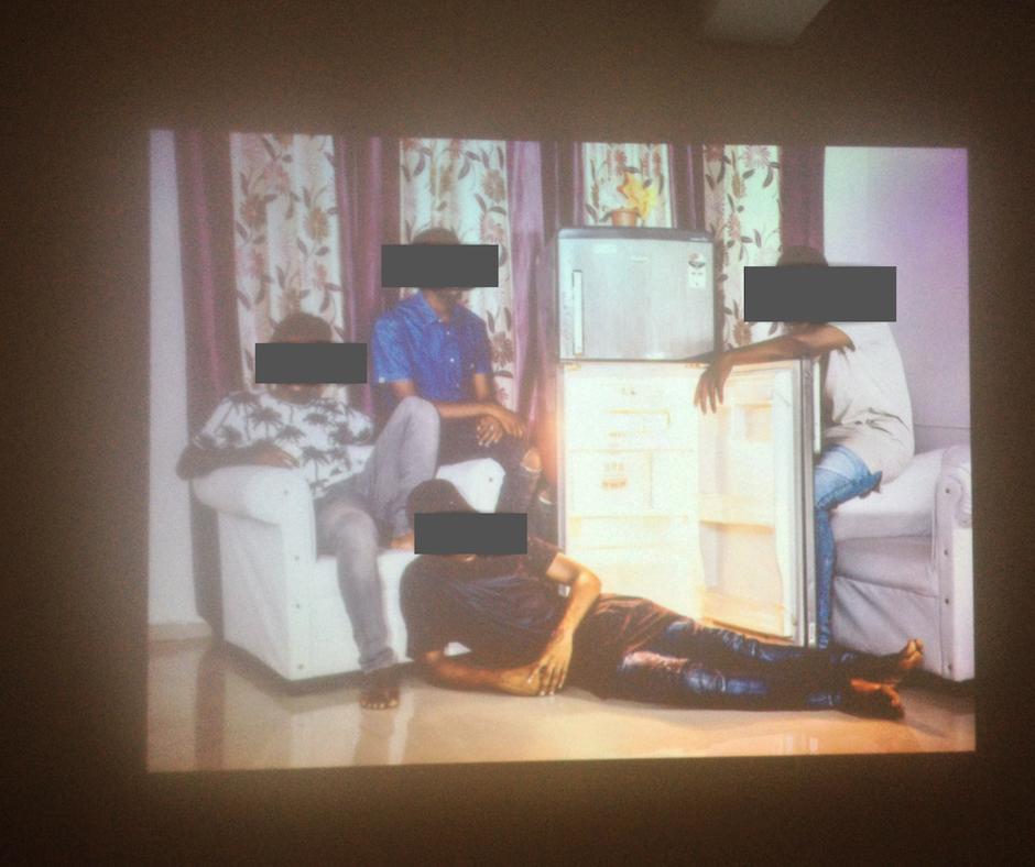 Two months after the riots in 2017, Shantaram displayed The African Portraits again in another exhibition at Gallery 320 sponsored by Tasveer. Filmmaker Wency Mendes and Samuel Jack, the then president of the Association of African Students in India (AASI), and other students went to the exhibition and saw that Shantaram had photographed four of the five Nigerian boys accused of cannibalism and staged them next to an empty fridge. Members of the AASI and others including Mendes had up to this point worked very hard to keep the names and identities of these five boys anonymous. Their visual identities were hidden specifically so they could go on with their normal lives—walk on the street, go to the market and perhaps not live under perpetual fear of being attacked over the accusations of cannibalism.