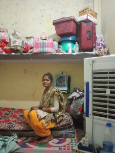 Payal Yadav (32) lost her means of livelihood along with her house. Yadav belongs to the Kinnar community – a term for self-identification used by several transgender and intersex people in India. She was excommunicated by her guru (the leader of her social group) when she asked for financial help and can no longer engage in badhaai, the traditional blessing work. She also faced discrimination while searching for flats to rent due to the stigma attached to the lives and livelihoods of Kinnar community. “I don’t care about the stigma – that’s still better than having no work,” said Yadav. She feels suffocated in her rented flat and spends most of her days sorting through the rubble of her demolished house collecting bricks. “I’m saving them for the day when I can re-build my house here.”