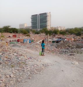 Poonam’s helplessness was not hers alone. On 7 June 2021, India’s Supreme Court (SC) upheld its existing order to demolish the houses of at least 10,000 families in Khori Gaon, a 120-acre informal working class settlement located on the Delhi-Haryana border at the foothills of the Aravalli Mountain range. This sounded a death knell on the lives of at least 100,000 residents – including 20,000 children and at least 5,000 pregnant and lactating women, who were rendered homeless. The demolition took place on 9 June – a day when India recorded 93,463 new COVID-19 cases. Divya Masih (name changed, 41), a resident of Khori Gaon, told me: “Modi was asking people to stay home and stay safe during the pandemic. How could we stay safe if we didn’t have a home?”