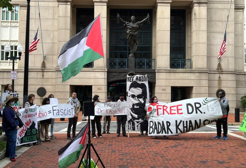 In the same press conference, ACLU Virginia’s Legal Director Eden Heilman said, “The Constitution protects us all, regardless of citizenship, from being targeted by the government for our political speech and our family associations. The Trump administration is trying to silence speech it doesn’t agree with by targeting people like Dr. Khan Suri and Mahmoud Khalil, but ideas are not illegal.”