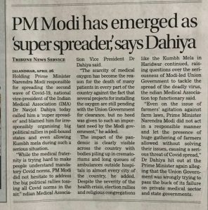 “Since April 2020, at least 20 HCs have held either state governments, the Centre and even the Election Commission of India accountable for what is now the world’s worst COVID-19 pandemic, where more than 350,000 are testing positive every day and more than 2,000 are dying—a rough estimate because many millions are not being tested and government are hiding deaths.”