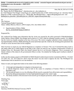Letter of Complaint to the NHRC requesting that a judicial magistrate inquiry be carried out in Obaidur Rahman’s case. Source: Mr. Kirity Roy, MASUM, West Bengal.