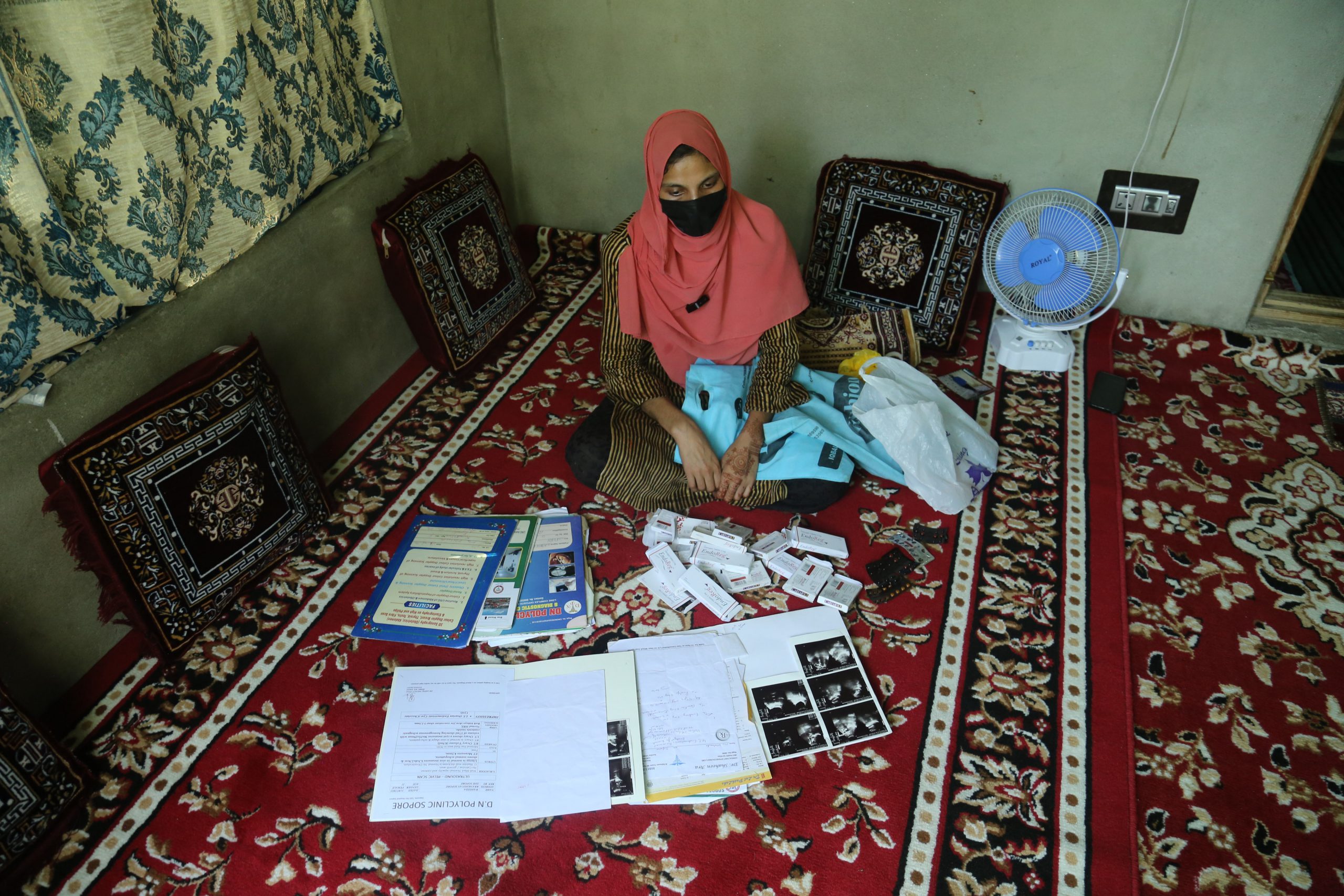 Nisar Ahmed Ganaie’s sister shows her brother’s medical records and laments the lack of medical attention. Photo Sajad Hameed